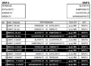 Sementara itu, grup B yang dihuni Blater FC, Cleopatra Jr., Karanganyar dan Kampoeng FC akan bertanding dua hari berselang, yaitu minggu pagi (28/7).